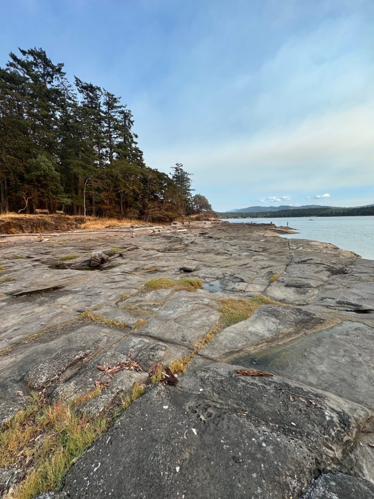 Beachcomber is famous for its incredible tide pools, salmon fishing opportunities, and picturesque ocean views. The park’s sandstone and pebble shoreline changes dramatically with the tide — at low tide, vast rock formations appear, revealing an underwater world of colourful marine life. At high tide, the same area transforms into a natural swimming spot, with my children’s favourite “mini cliff jump” becoming the perfect place to plunge into the cool Pacific waters