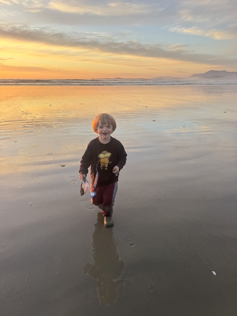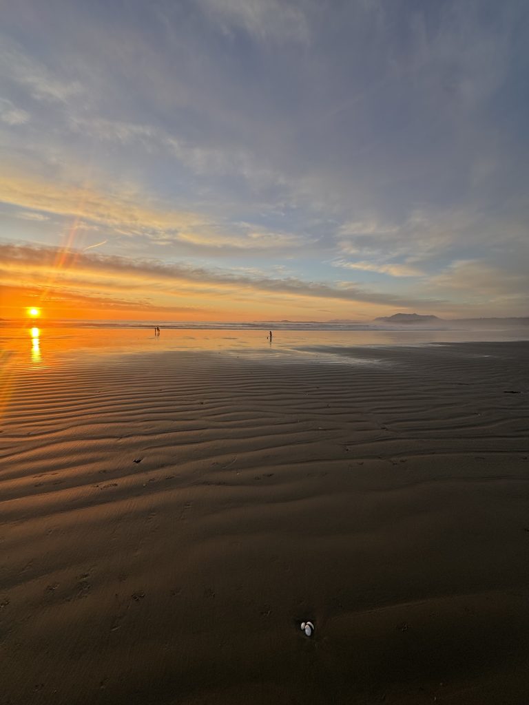 As the sun began to set, the whole sky turned gold and pink, reflecting across the wet sand. The sound of gentle waves mixed with the distant call of seabirds, and everything felt perfectly still. It is the kind of moment that makes camping worth it—the quiet, the colour, and the sense that you are right where you should be.